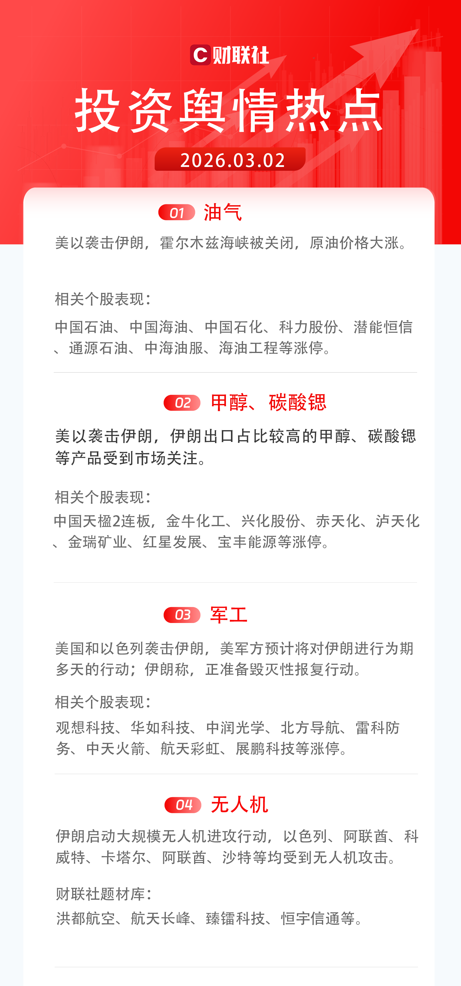 3)军工:美国和以色列袭击伊朗,美军方预计将对伊朗进行为期多天的行动;伊朗称,正准备毁灭性报复行动。