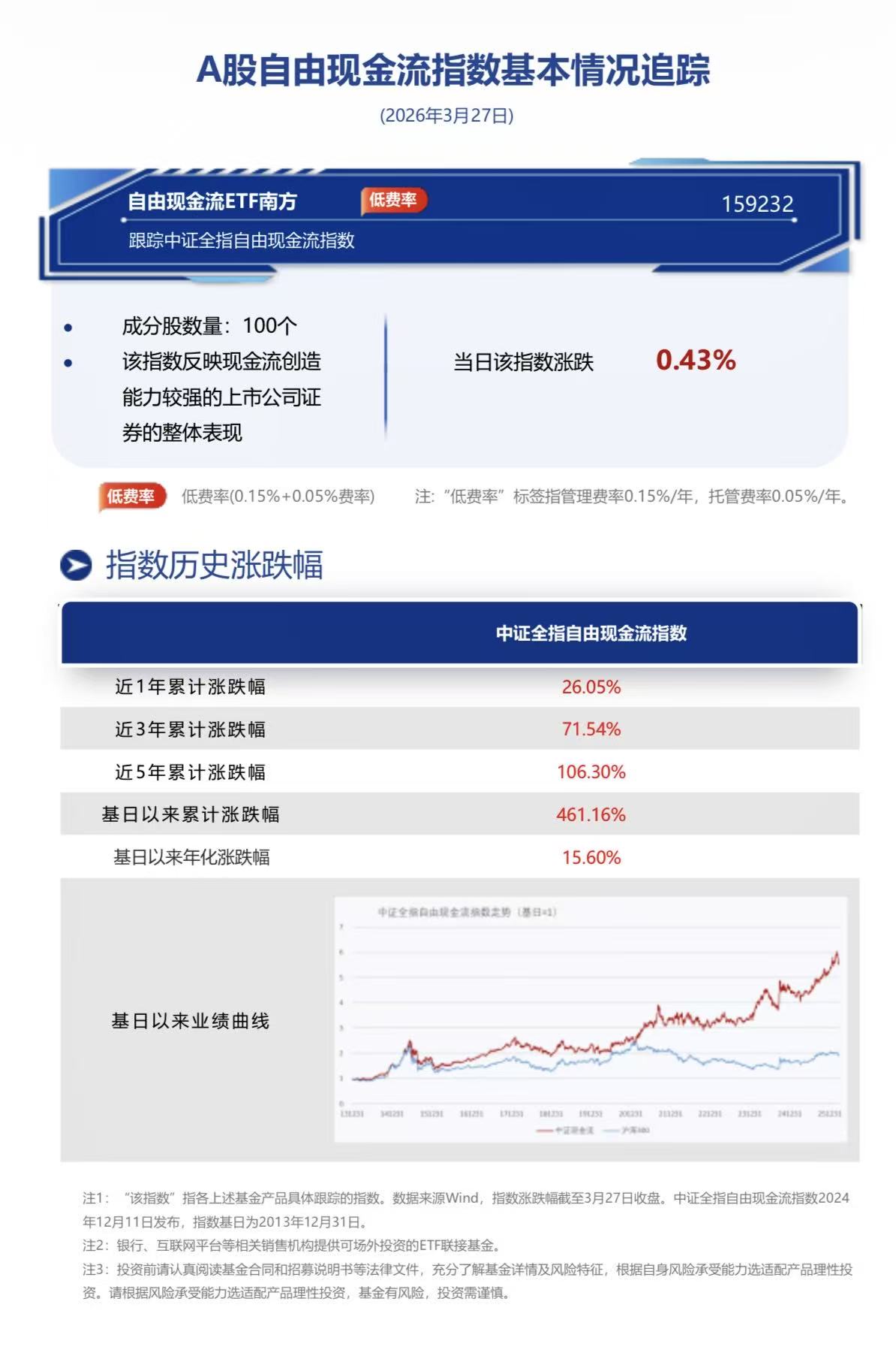 截至2026年3月27日收盘,自由现金流ETF南方(159232)换手5.53%,成交2.23亿元,跟踪标的指数中证全指自由现金流指数(932365.CSI)涨0.43%。