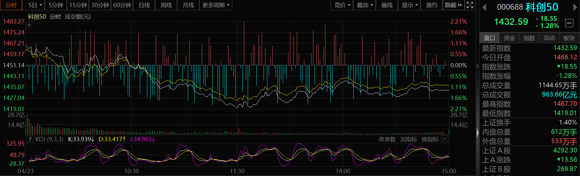 《科创板日报》23日讯,今日,科创50指数收跌1.28%。盘面上,AI硬件方向陷入调整,德科立跌超9%,炬光科技、腾景科技、南亚新材跌超8%。航空航天板块下挫,*ST观典跌停。航天南湖跌超9%。上涨方面,软件板块表现活跃,佳华科技涨超15%,品高股份涨超6%。