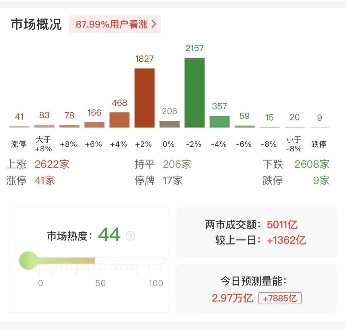沪深两市成交额突破5000亿 预计全天成交近3万亿