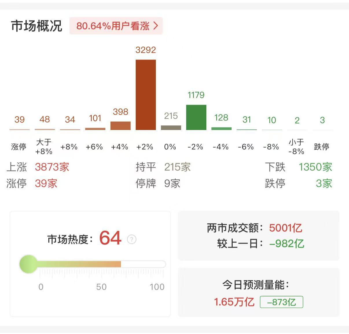 10月21日电,据盯盘数据显示,开盘不到半小时,沪深两市成交额突破5000亿,较昨日此时缩量近1000亿,预计全天成交金额不足1.7万亿。