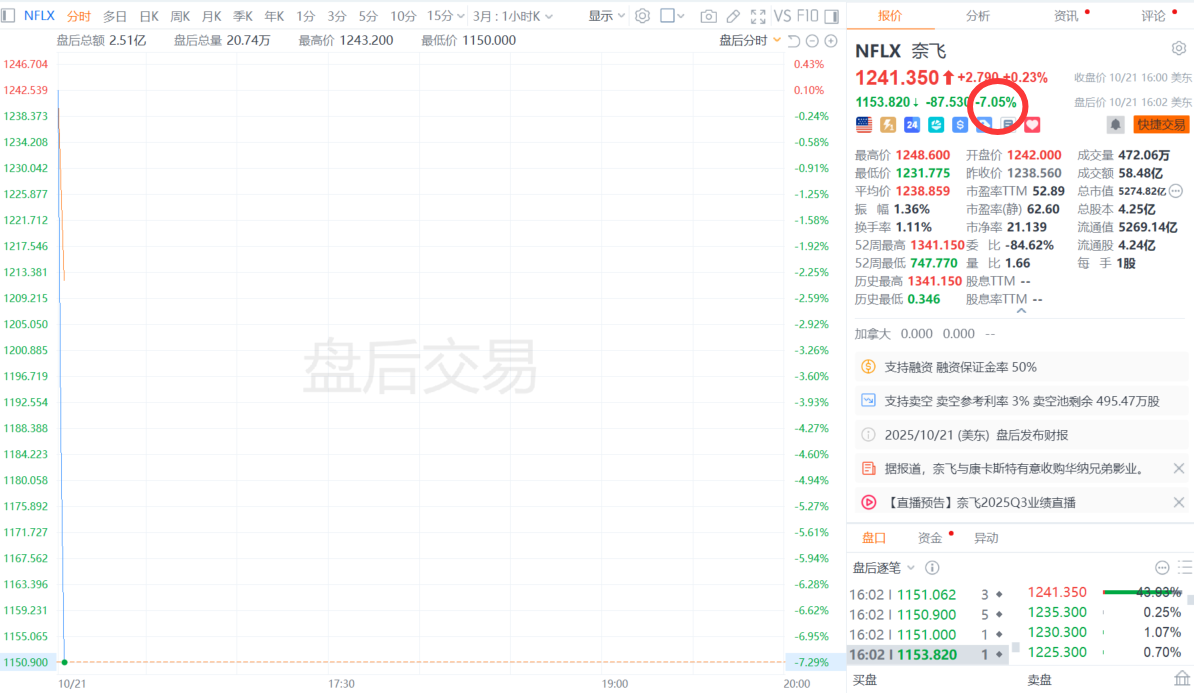 奈飞美股盘后跌超7%